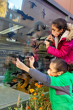 In addition to making windows and buildings safer for birds, we can ensure that birds have all the habitat requirements they need to succeed. That involves planting native plants that provide essential food sources (native plants are important, because birds evolved to eat them or the insects that specialize on them; many popular garden plants don’t provide nutrition in this way). Create a three-dimensional landscape with a variety of plant types to provide shelter, nesting sites, and food. Avoid using pesticides or herbicides, which can poison birds directly—or indirectly, when they ingest insects or seeds contaminated by harmful chemicals. This also creates a safe space for young people, as well as a place where people, birds, and other wildlife can co-exist. And finally, another action that protects birds is to keep cats inside. Feral cats or pet cats that live or are allowed outdoors kill millions of birds every year.